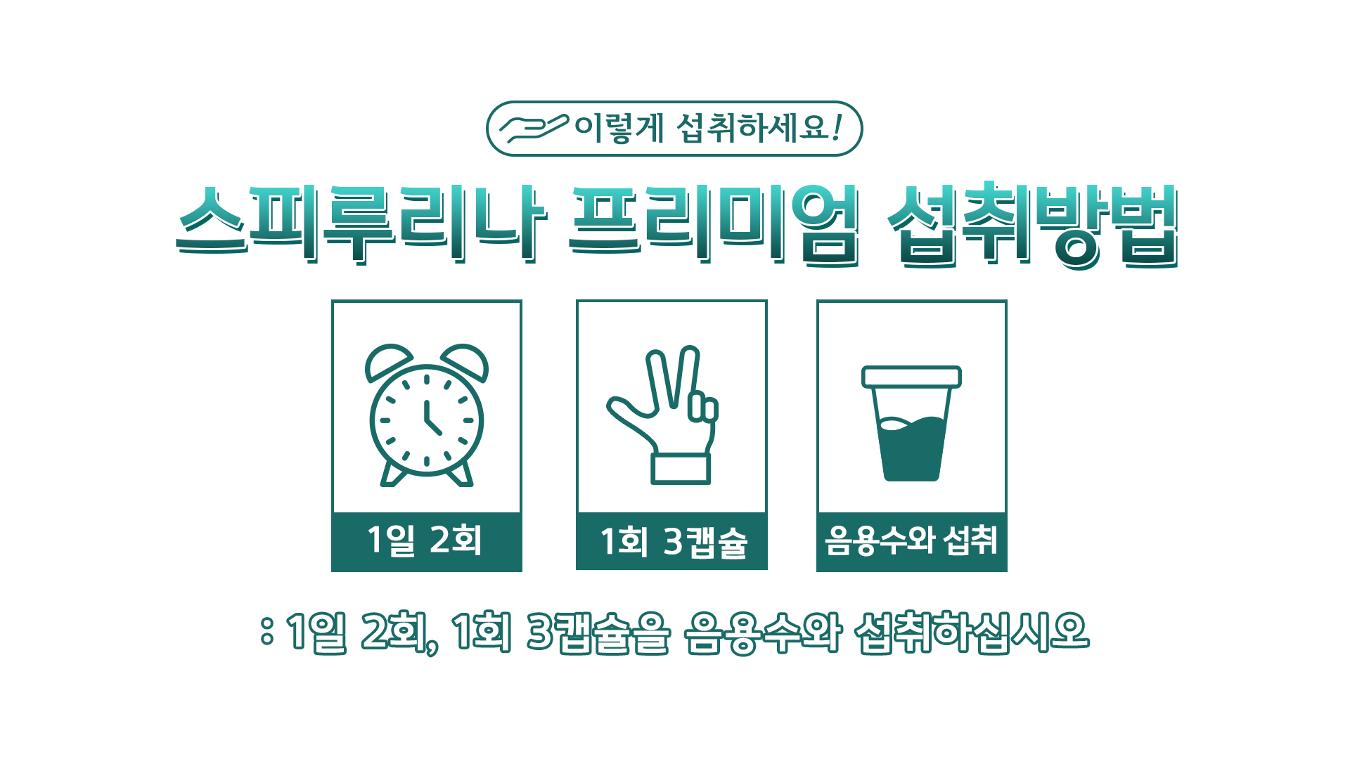 1일 2회, 1회 3캡슐을 음용수와 섭취하십시오.