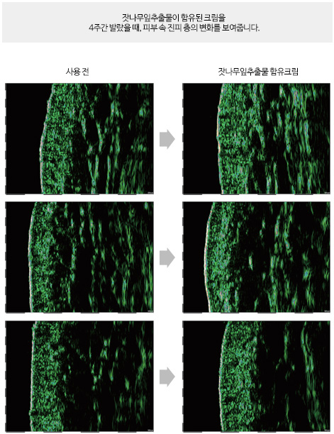 진피치밀도가 증가될 경우 주름의 발생을 억제하고, 피부를 젊고 건강하게 유지하는데 중요한 작용을 합니다.